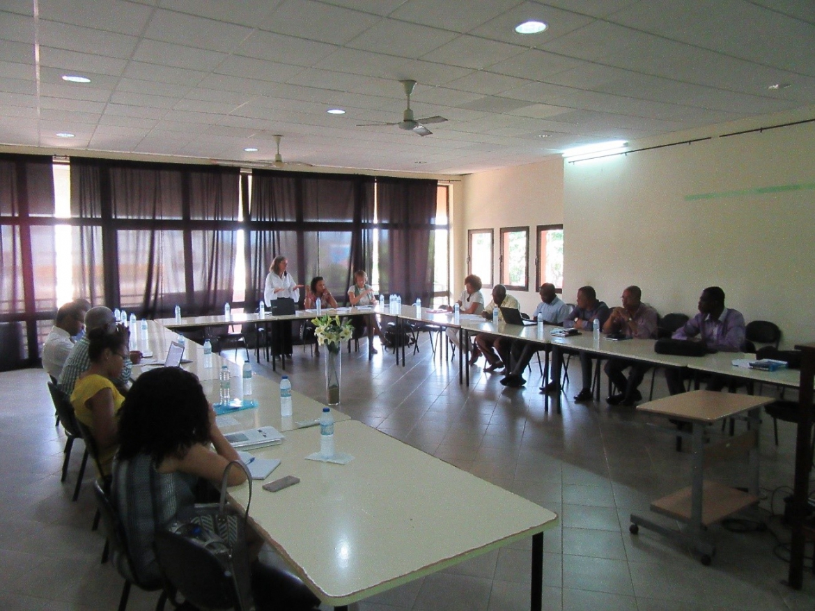 Apresentação da nova equipa de Assistência Técnica ao Projeto AMCC-Redução da Vulnerabilidade Climática em São Tomé e Príncipe e do seu plano de trabalho: Ana Gomes, responsável pelo reforço de capacidades/apoio à gestão do projeto, Valérie Oliveira, encarregue do Plano de comunicação, Malene Wiinblad responsável dos planos de adaptação, Guido Corno encarregue do quadro institucional, Luís Alves responsável de formação e reforço de capacidades, Miguel Neto, responsável de sistemas de informação e seguimento.