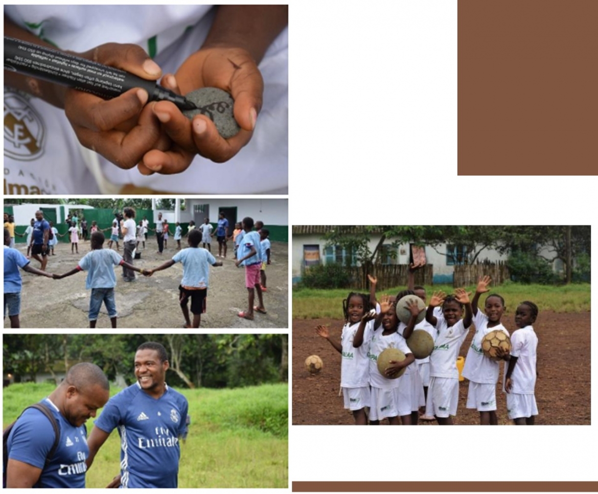As crianças e jovens da Fundação Filhos de STP, nesta sessão realizada na Agripalma, pintaram as Pedras a utilizar na actividade da Maratona de STP com mensagens relacionadas com as Mudanças Climáticas.